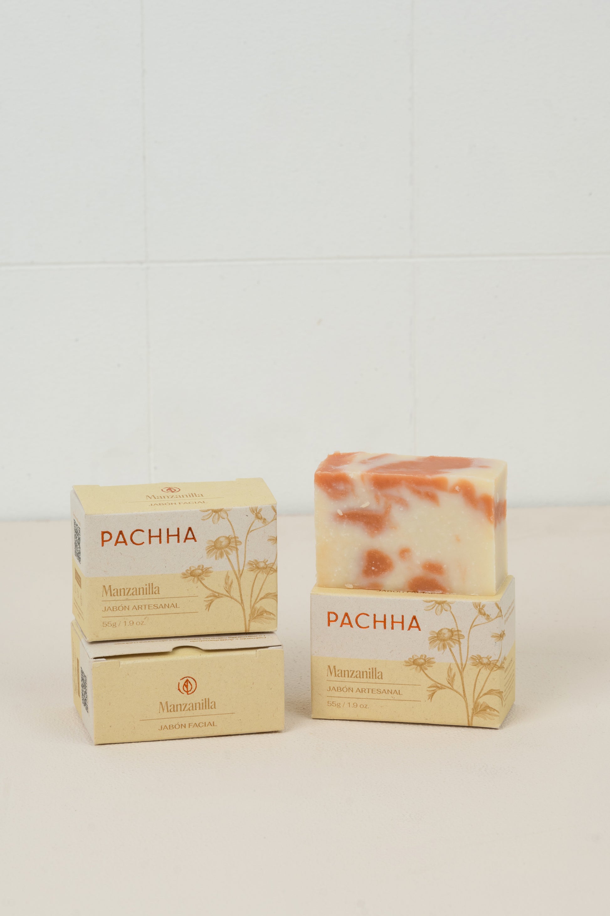 Jabón facial natural disponible en las variantes de Manzanilla o Romero y Arcilla.